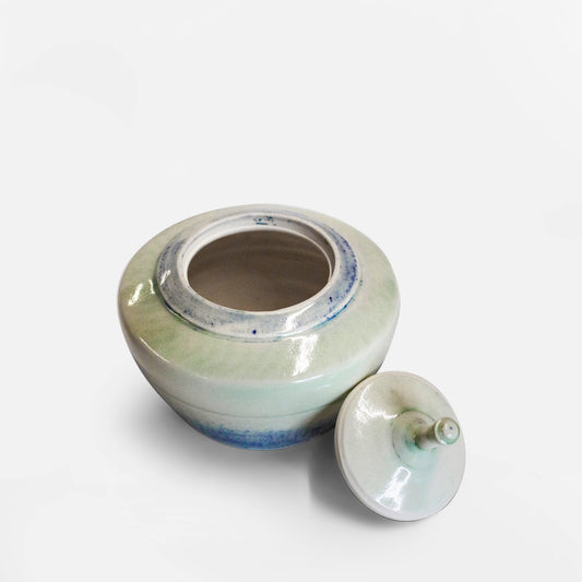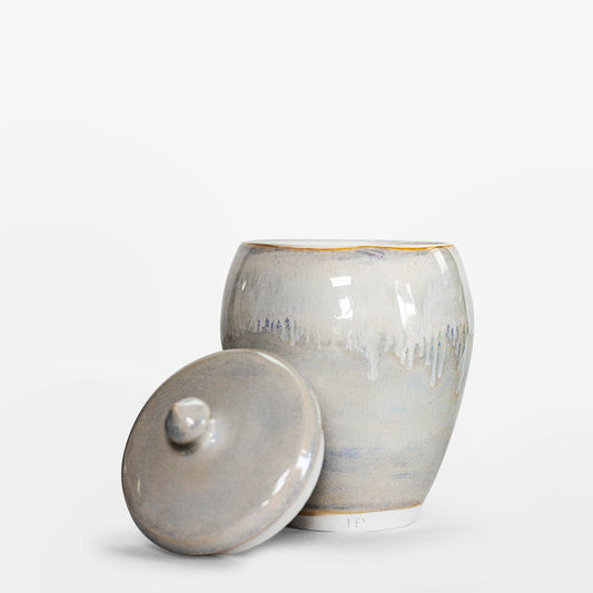 Handmade Porcelain Urn - Soft Blue With White Frosted Top