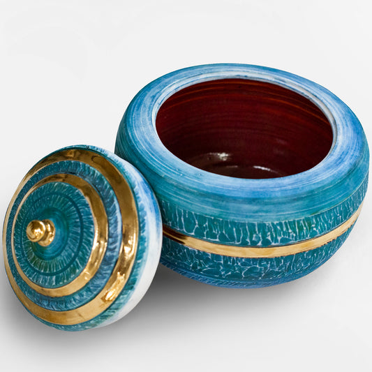 Handmade Aqua Porcelain Chattered Urn - 24 Carat Gold Banding