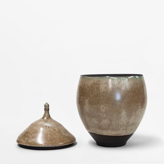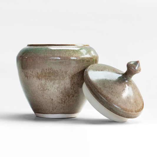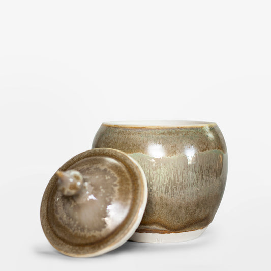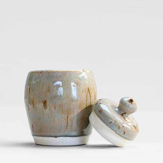 Handmade Chattered Porcelain Stoneware Small Lidded Pot