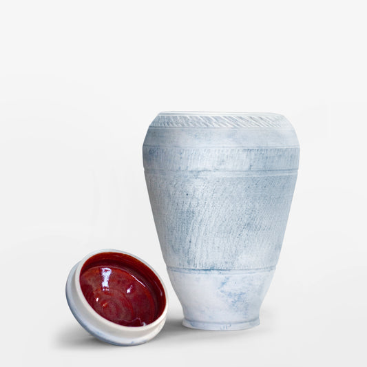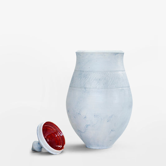 Handmade Porcelain Urn - Smooth White With Red Interior